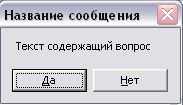 MsgBox «Текст содержащий вопрос», vbYesNo, «Название сообщения»