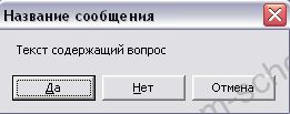 MsgBox «Текст содержащий вопрос», vbYesNoCancel, «Название сообщения»