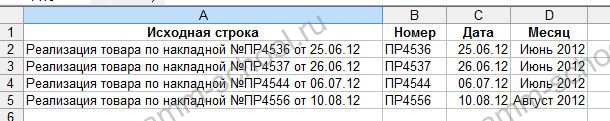 Необходимо из этих строк извлечь даты, номера накладных, а так же, добавить поле месяц для фильтрации строк по месяцам.